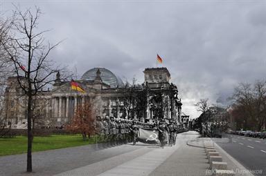 Taking old World War II photos, Russian photographer Sergey Larenkov carefully photoshops them over more recent shots to make the past come alive
